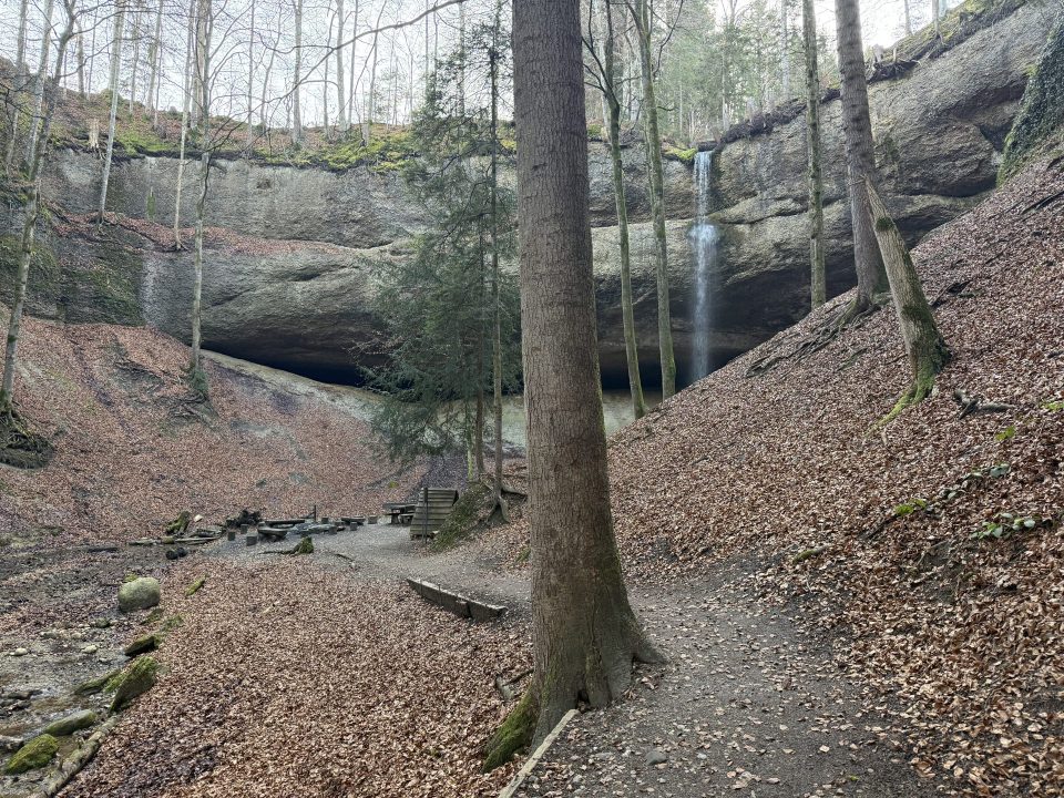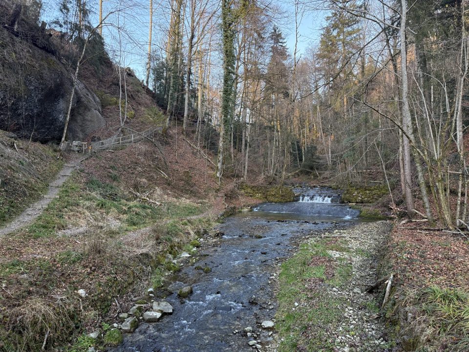Es ist kalt. Ich ziehe meine Wollmütze tief über die Ohren und die Augenbrauen hinunter. Das Frösteln überwinde ich mit zügigem Laufen. Viel Auge habe ich für die kleinen Läden an der Hauptgasse von Wald nicht. Ich ziele auf den schnellsten Weg zum Sagenraintobel. Di8e leichten Steigungen bringt die erwünschte Erwärmung, bald lasse ich die letzten Häuserzeilen des Dorfs hinter mir. Einmal im Tobel angekommen erfreue ich mich über das Wasserspiel – und bald auch über die Sonne, die ihre zarten Winterstrahlen durch die Baumkronen gleiten lässt.