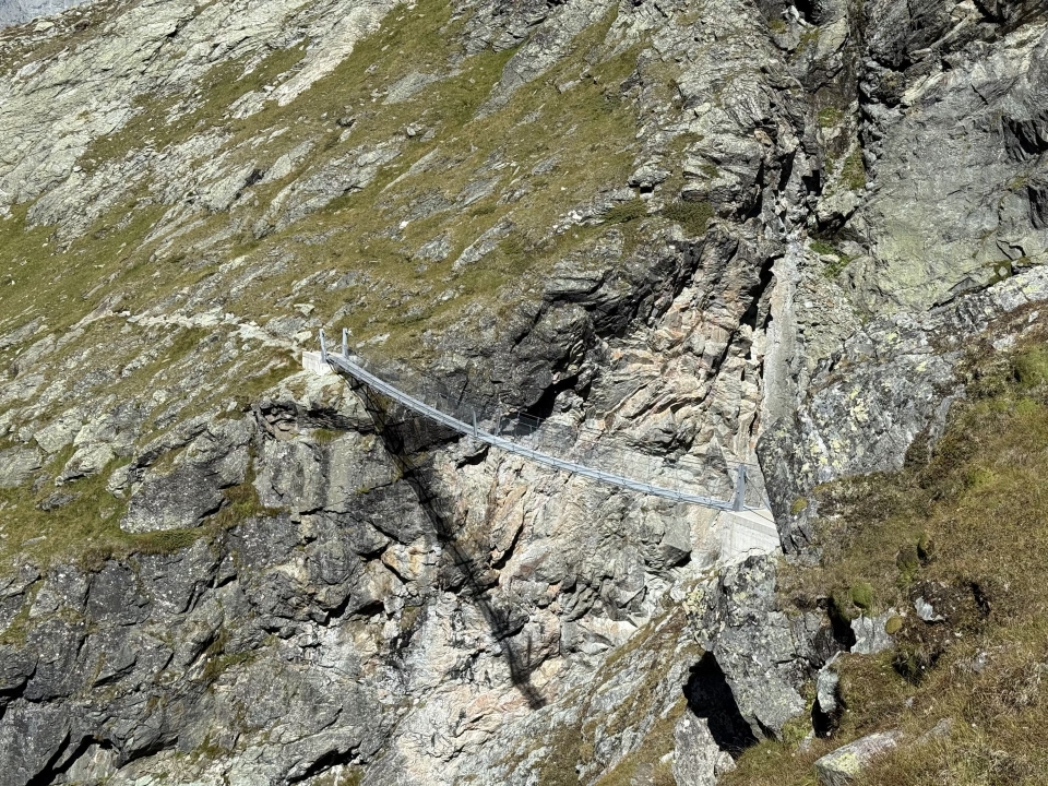 Eine Tafel erinnert an die Militäreinheit, die diesen Pfad vor fast 40 Jahren neu angelegt hat – ein Meisterstück. Nicht alles ist noch passierbar: Eine neue, solide einbetonierte Hängebrücke hilft über eine Schlucht hinweg. Die alte Schlüsselstelle, eine Galerie am Fuss der Felsen, ist wohl dem Steinschlag zum Opfer gefallen.
