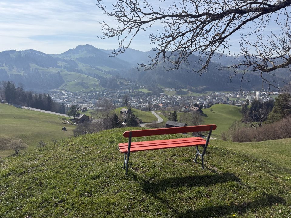 Ich starte in Herisau. In den Gassen des alten Dorfkerns ist es noch still. Herisau ist seit 907 schriftlich belegt — das gibt einem kurz zu denken, bevor man die Wanderung beginnt. Der Weg führt durch das Zentrum, vorbei an der reformierten Kirche, wo Pilgerinnen und Pilger traditionell ihren Stempel abholen. Ich schmunzle und lasse das sein. Für mich braucht es keinen Stempel, um diesen Weg zu erkunden.